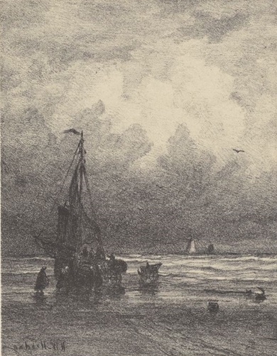 H.W.メスダフ「海岸の嵐」制作年代不詳(リトグラフ)