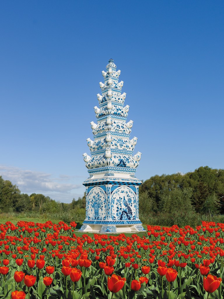 デルフトの高速道路沿いに高さ12メートルのデルフト焼きのチューリップの花瓶が出現!オランダの中西部に位置するデルフトは400年の歴史を誇るデルフト焼きの産地です。このような困難な時期だからこそ、デルフトの町を明るくするような特別なアート作品が作られました。このユニークな作品は、ランド・アート・デルフト彫刻公園内に設置されていますが、高速道路沿いからもよく見えるように設計されています。公園内は貸切バスの乗り入れも無料で、この巨大な作品の前で写真撮影することも可能です。