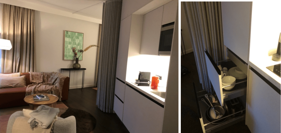 スキポール空港駅はスキポールプラザの地下にあり、とても便利です。空港駅からハーグ中央駅までは鉄道で約40分、ハーグ中央駅からホテルまでは徒歩約15分。スーツケースをガラガラ引きずりやっと、1泊目のホテル、Cove Den Haag にチェックインしました。こちらのホテル、客室内にキッチンがあり、長期滞在ができるホテルです。ホテル内にはレストランがありませんが、事前に依頼すれば、提携しているレストランで朝食を手配することもできるそうです。