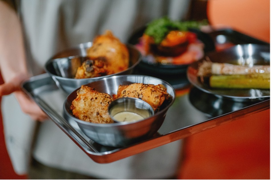併設するカフェは、夜10時まで営業。昔の修道院の食堂をイメージした長テーブルで地元の食材を使った季節のメニューが楽しめます。