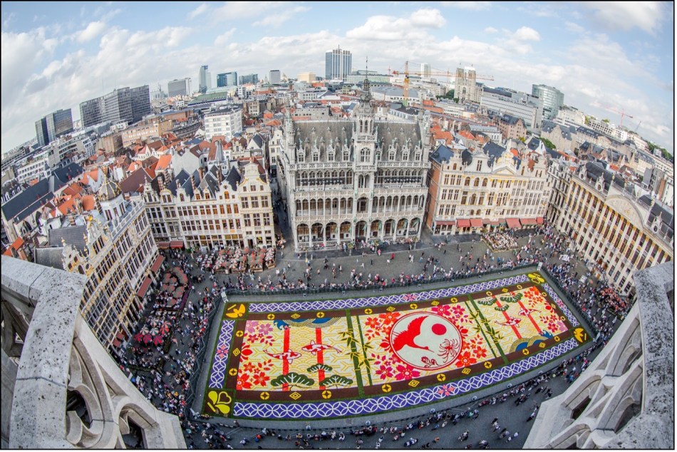 2016年開催のフラワーカーペットの様子。日本ベルギー友好150周年のお祝いとして、この年も日本がテーマでした